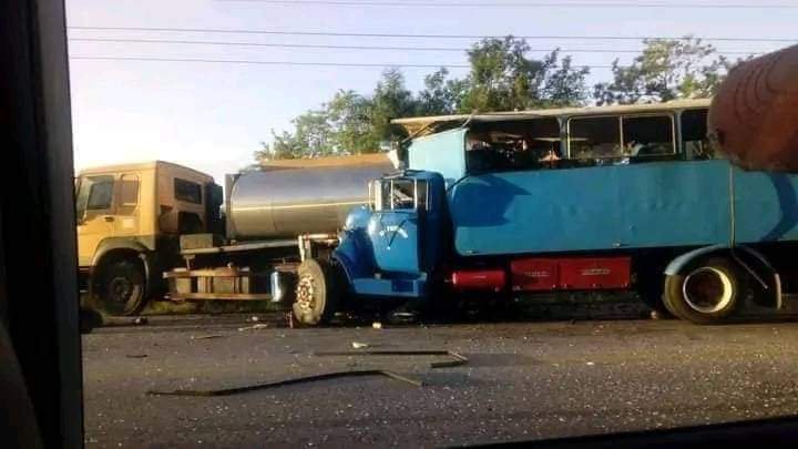 🛑 CUBA|Otro lamentable accidente en La Vía Blanca a la altura de Puerto Escondido, Santa Cruz del Norte, Mayabeque, entre un camión cisterna y un camión de pasajeros Matanzas-Habana.