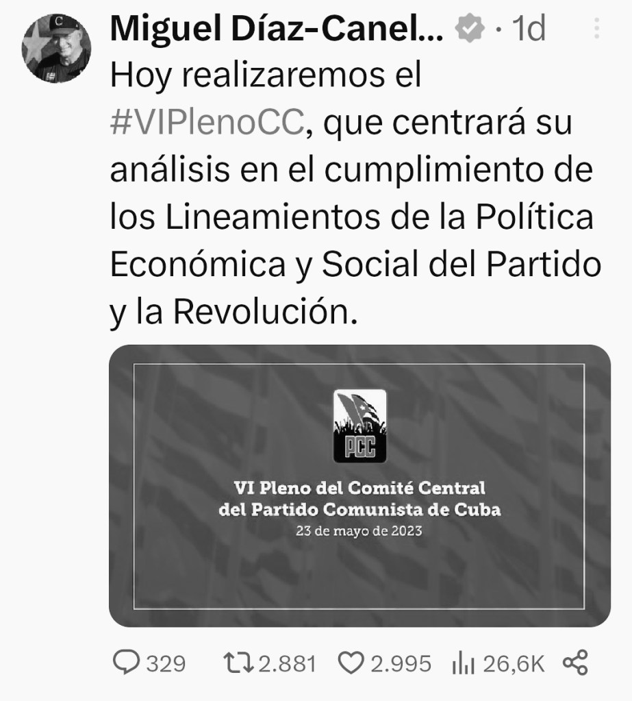 CUBA: Hoy el dictador Miguel Mario Díaz Canel se reúne en la Asamblea Nacional para hablar de los lineamientos aprobados en el 2011 y que tendrían fecha de cumplimiento en 2026.