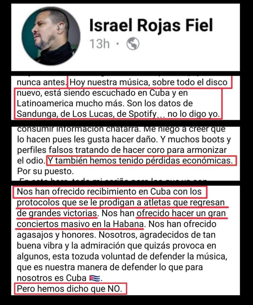 Algunos se han encaprichado en decir que no es cívico, que deberían dejarle hacer sus conciertos en paz, y normalmente eso debía pasar, pero como se puede ser cívico con alguien que apoya una dictadura, que proclama abiertamente su apoyo a un dictador, que incluso apoyó la represión el 11 de julio de 2021 contra el pueblo cubano.