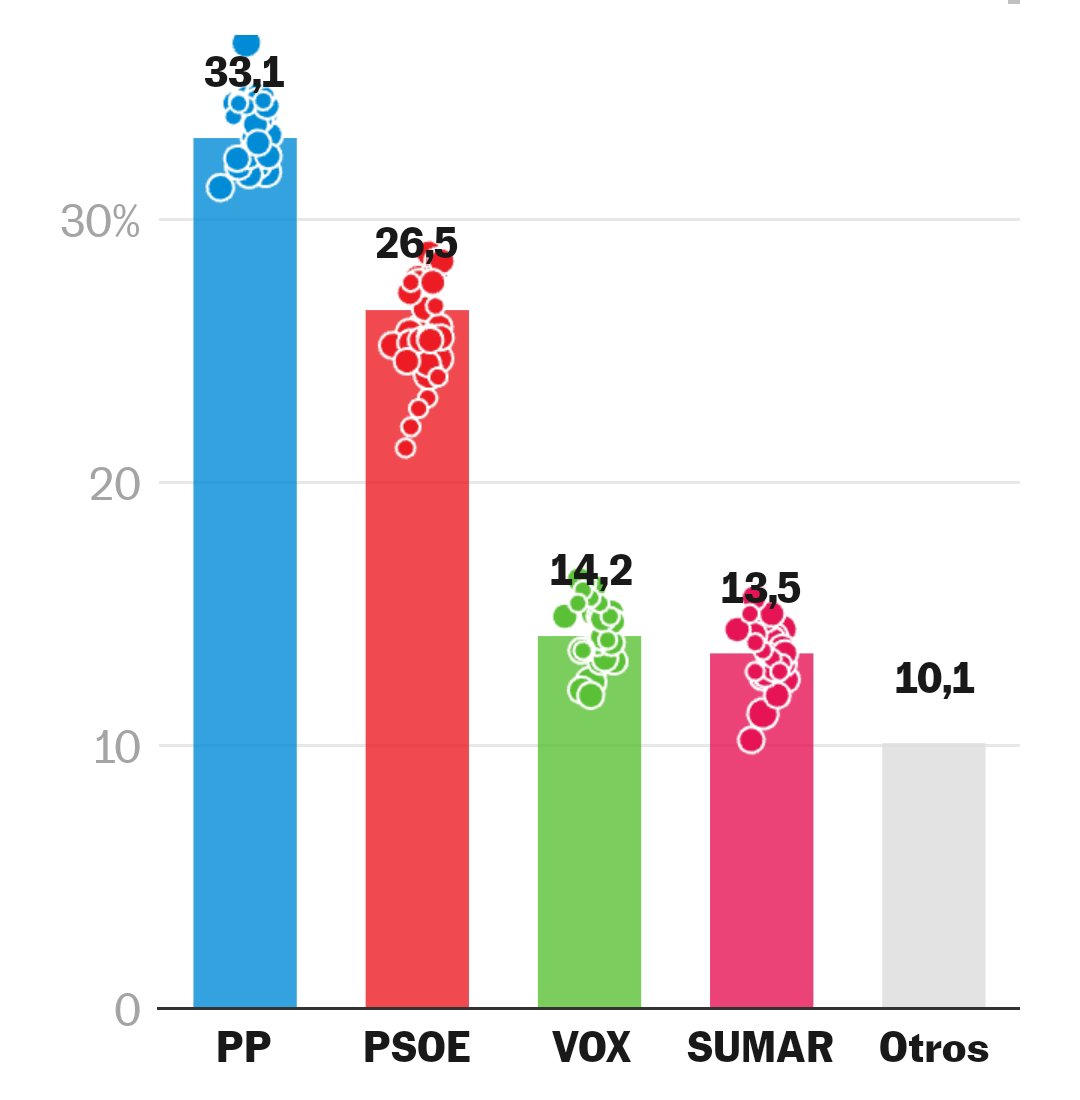 En los últimos sondeos se observa un ligero avance del PSOE, aunque el PP sigue por delante y un eventual Gobierno con Vox sigue siendo el más probable.
