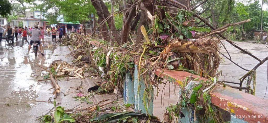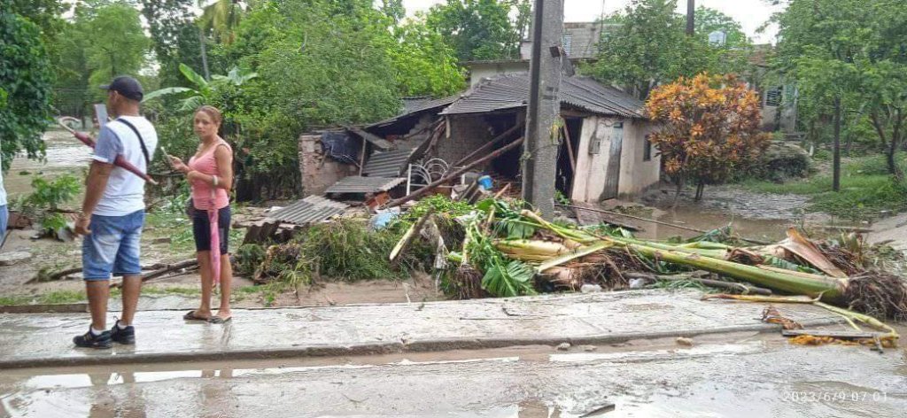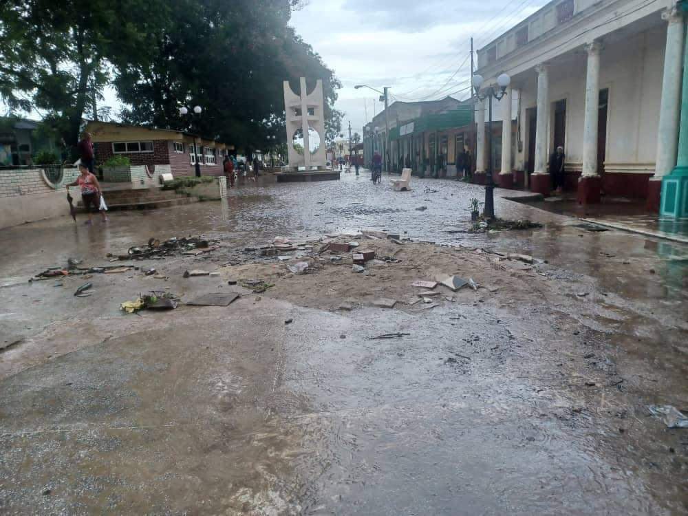 «En este territorio, la salida de su cauce del río Jiguaní, sin precedentes en la historia, según comentaron vecinos con los cuales conversamos, provocaron serias afectaciones en la parte urbana del poblado, dejando gran cantidad de escombros, colapsaron las paredes de algunos inmuebles, incluyendo una barbería destrozada totalmente por las fuerza de los golpes de agua».