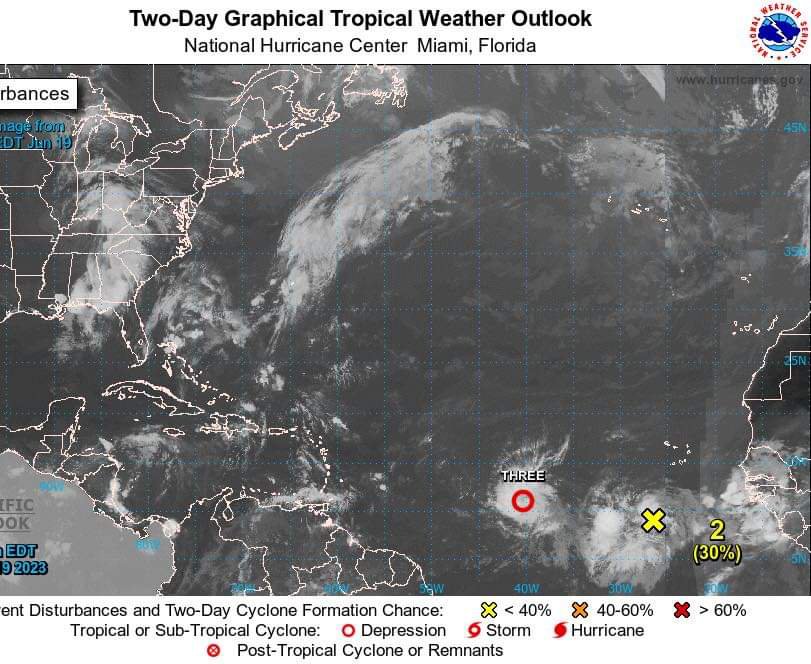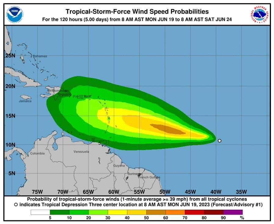A las seis de la mañana, su posición central se estimó en los 14.8 grados de latitud norte y los 70.3 grados de longitud oeste, ubicándose aproximadamente a 415 kilómetros al sur de Santo Domingo, República Dominicana.
