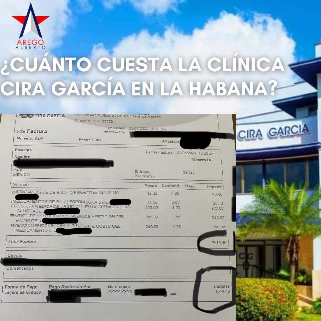 Según la factura emitida el pasado 22 de junio de 2023, el coste general fue de 1514,40 dólares en el Cira García. La fuente no especificó por qué ingresó el paciente que es de México.